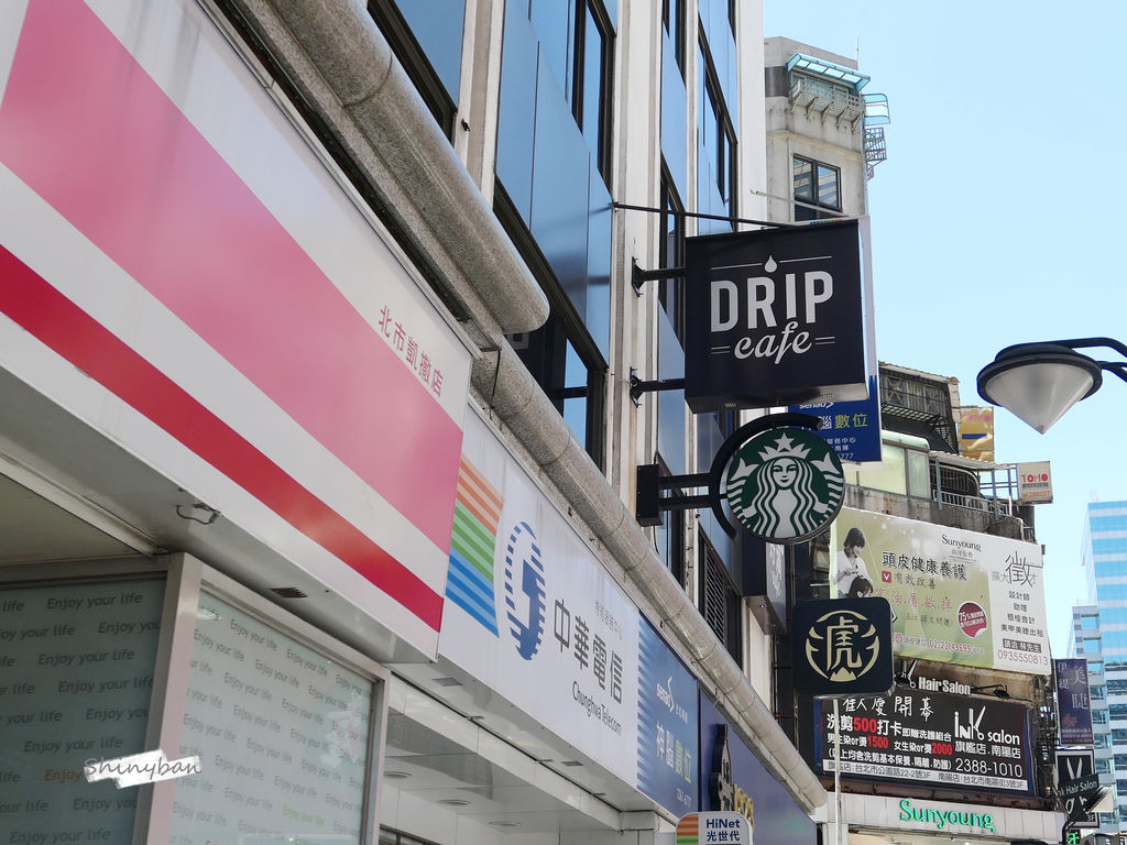 「Drip Cafe 好滴」就位於學生眾多的南陽補習街旁,不管是搭乘什麼交通工具都十分便利,位於二樓的招牌覺得不是那麼顯眼,我是認一樓的「老虎堂」才找到的。