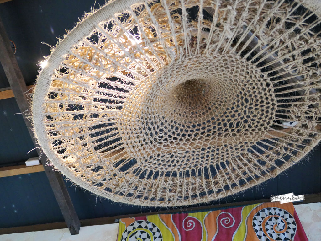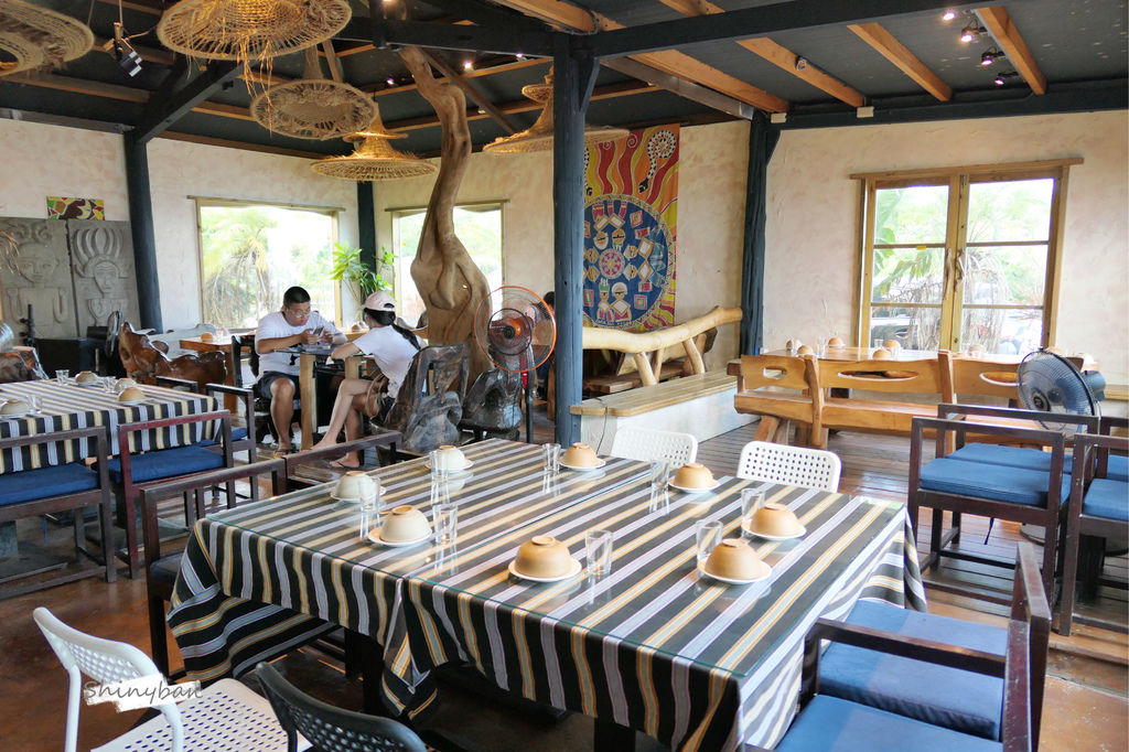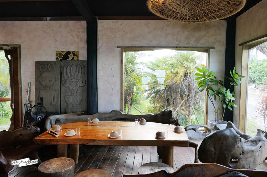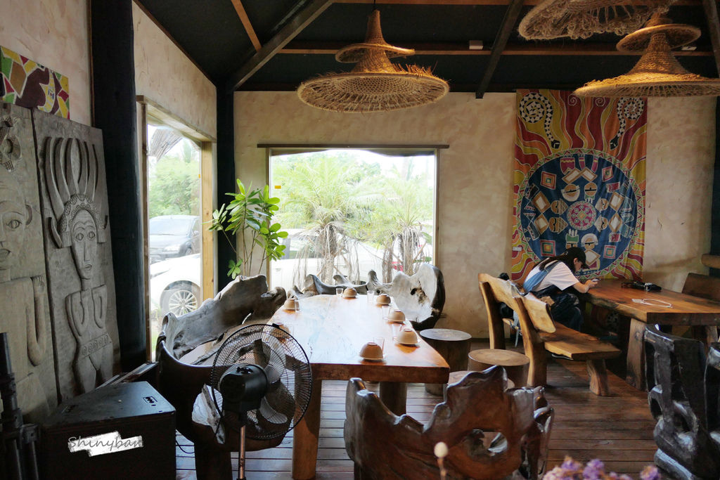 店裡許多擺設是由漂流木製成,充滿著原民風情,牆上的圖騰掛飾及高掛天花板的編織燈罩也十分吸睛。