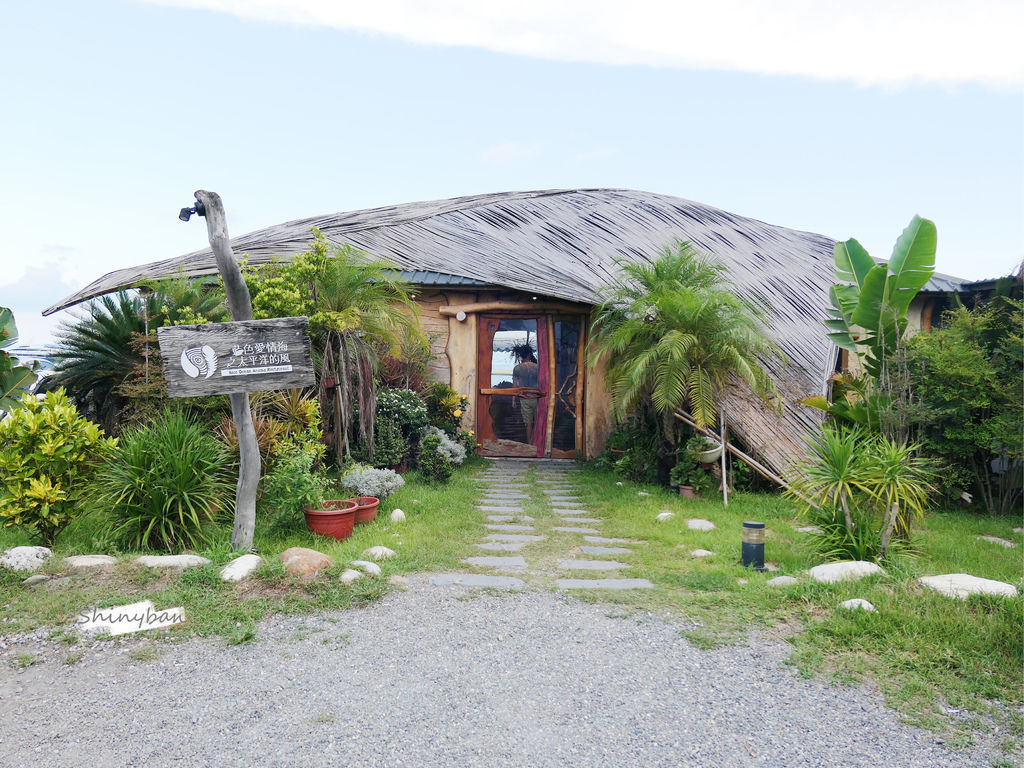 建築外觀很像一個小茅草屋聚落,幾顆熱帶樹木點綴,頗具南洋色彩。