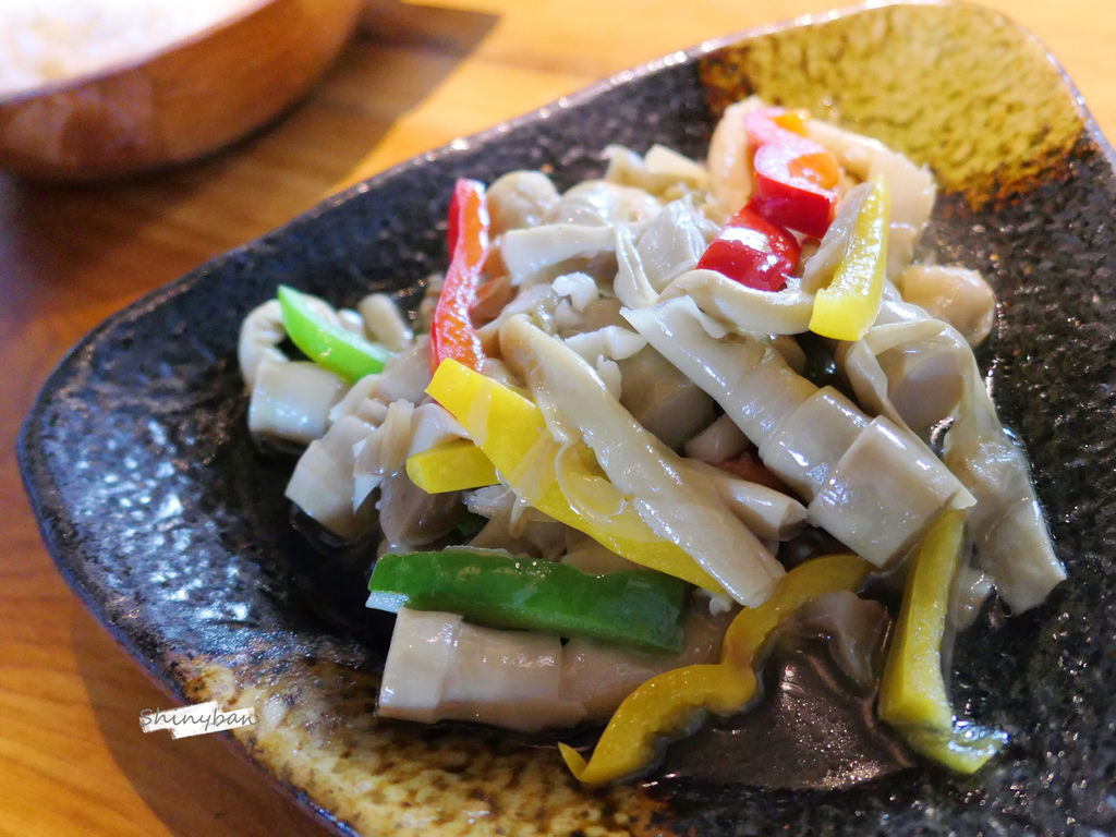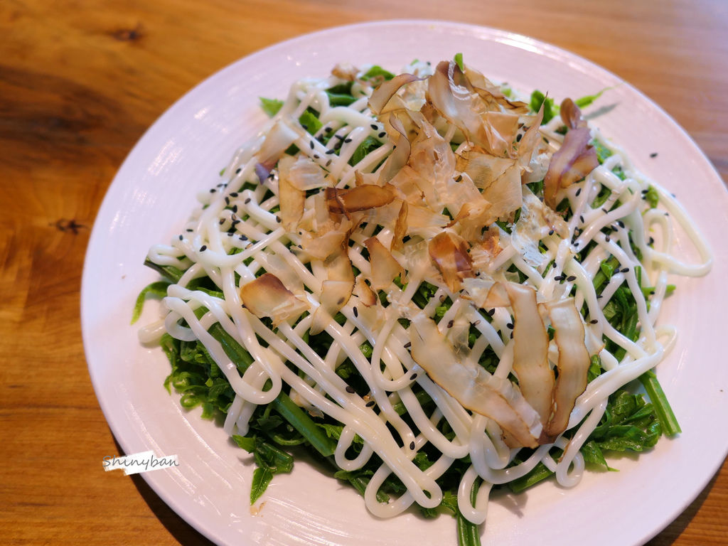 當天的野菜是過貓,上面淋上大量美乃滋跟撒上柴魚片,過貓口感吃起來很滑嫩並帶點黏性,跟美乃滋很搭,但在許多熱炒店都可以吃到,少了點特色。