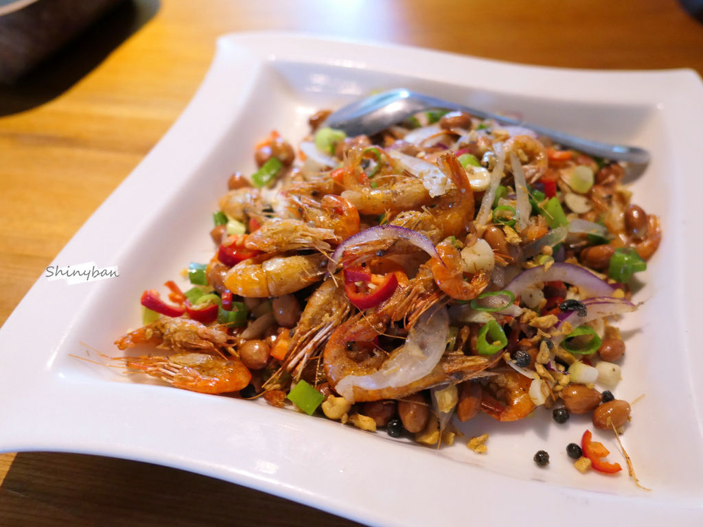 蝦子炸得酥脆,但吃的時候要非常小心觸鬚很刺人,不然傷到牙齦或喉嚨就不好了。