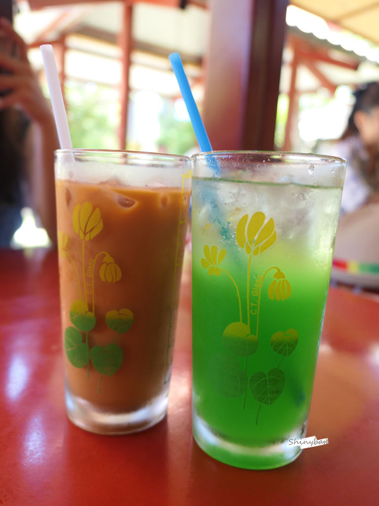 翠玉檸檬蘇打充滿不自然的翠綠色,喝起來也是不太天然的汽水味,個人不是很喜歡,而這裡的泰式奶茶有經過調整,大概是一般手搖飲的微糖甜度,口感也不夠厚實濃郁,稍嫌可惜。