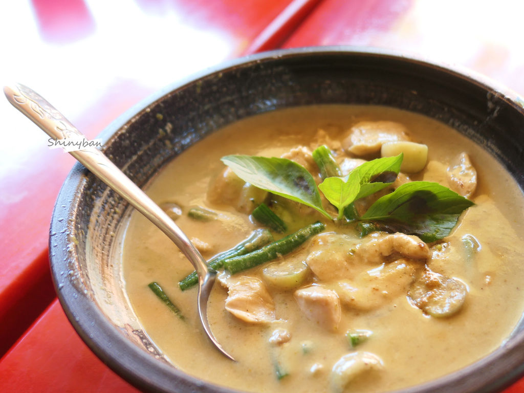 這家是老闆推薦的主打料理,由於不辣,大人小孩都能接受,甜甜的咖哩滋味很下飯,雞肉似乎是使用雞胸,雖然不乾柴但也不多汁,一盤大概是2-3人份,吃起來跟一般的綠咖哩差異不大,表現不到驚豔。