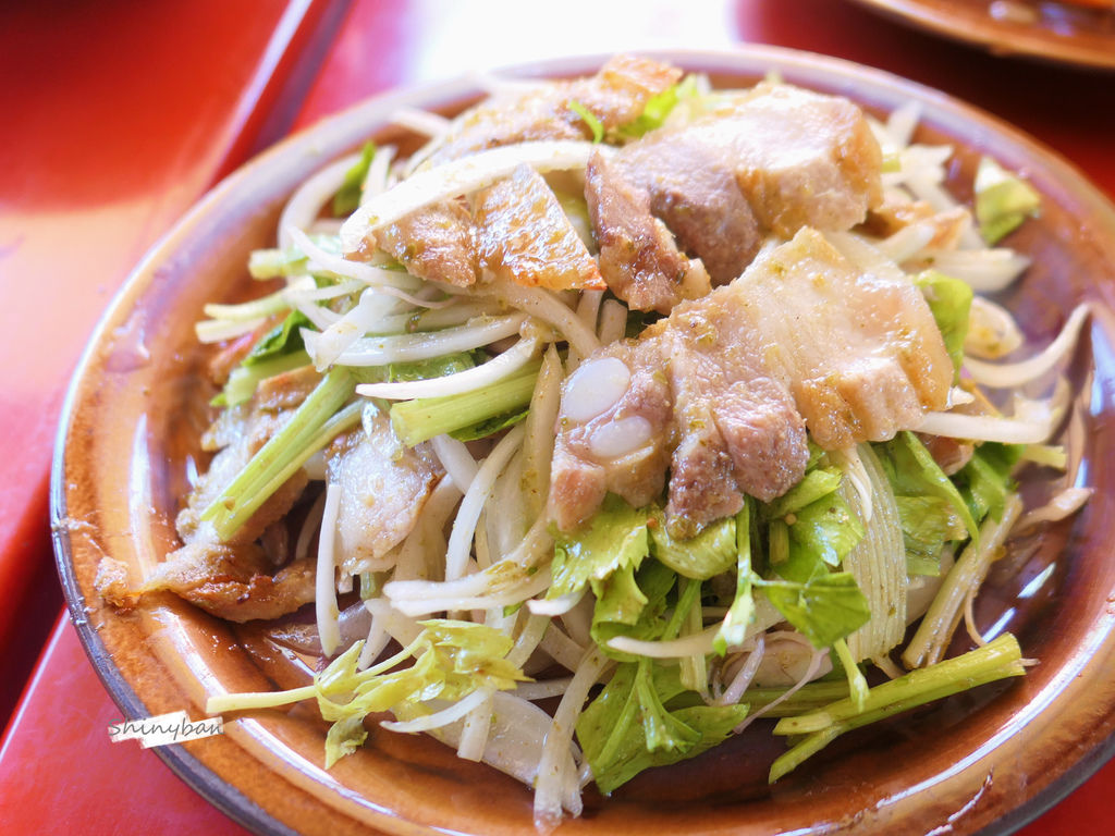 以芹菜跟洋蔥為主的蔬菜,搭上保有口感的豬五花,口感很有層次,醬汁的酸、洋蔥的嗆辣,感覺可以把身體的暑氣都逼走,很清爽的一道涼拌菜,份量也不少。