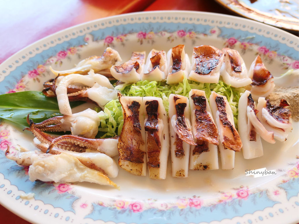 烤軟絲本身沒有多加調味,一旁有提供胡椒鹽可以做沾取,吃起來算新鮮,但軟絲本身比較小隻,想當然爾就不夠厚實多汁,稍微可惜不過表現還是不錯。