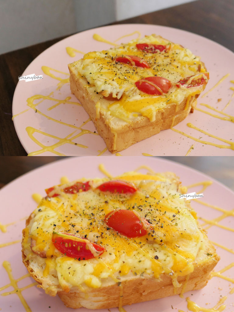 這道比起鹹流沙吐司就普通許多,配料就是燻肉、起司還有小番茄,吃起來似乎有美乃滋,口味偏酸我不是很喜歡,而且因為配料有水分,吐司有稍微影響到口感。
