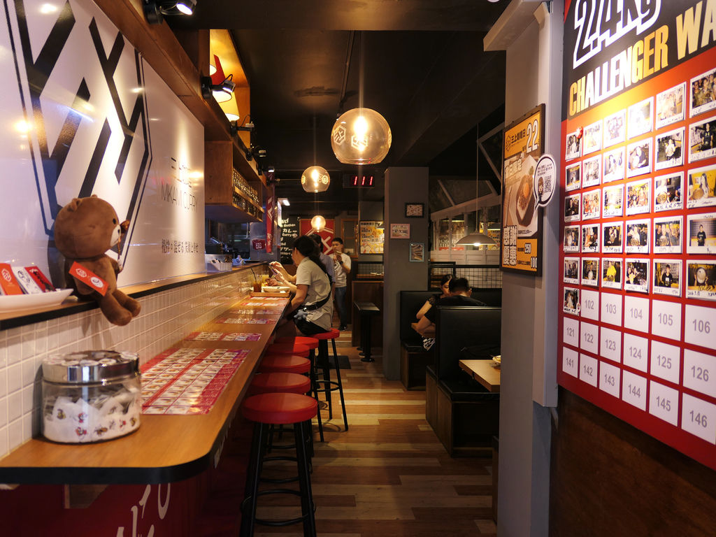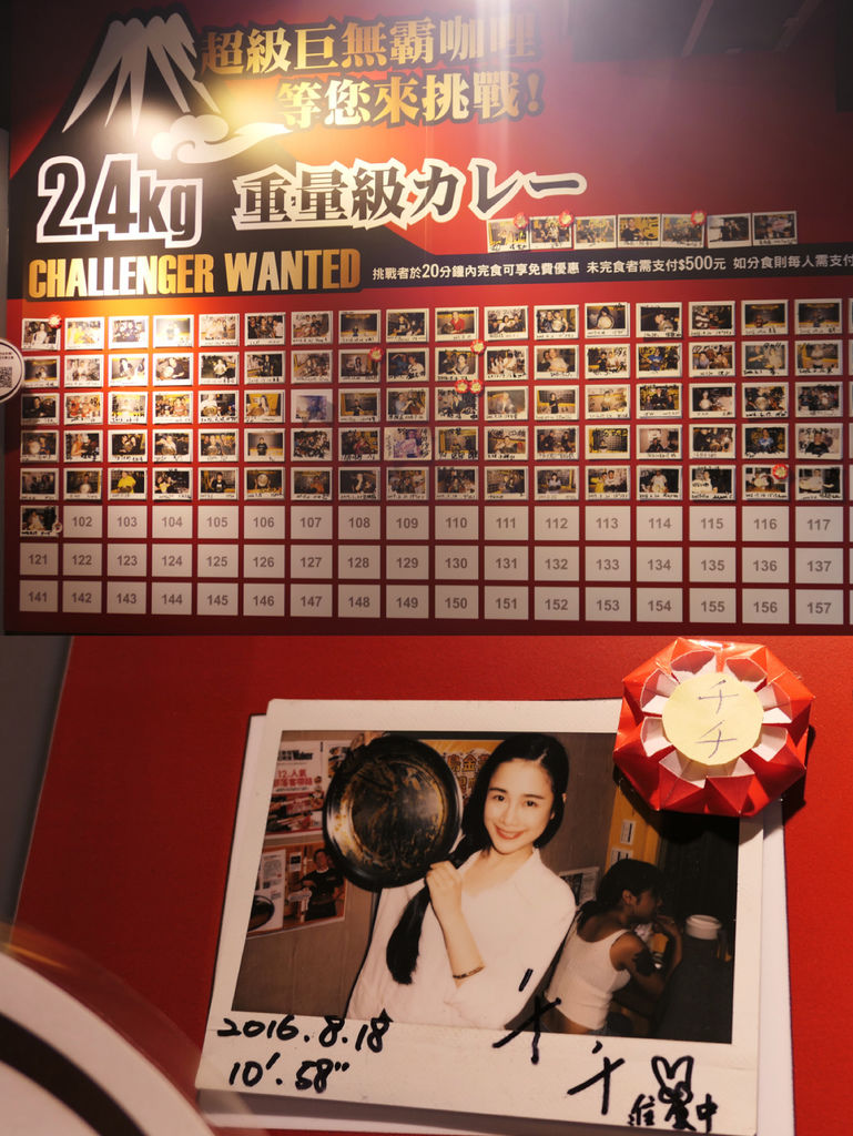 走進店裡的右手邊,就有一大面超級巨無霸咖哩的征服名冊,仔細一看上面也有不少大胃王界的熟面孔,千千是我平常就有在follow的youtuber,一碗重達2.4kg的咖哩飯竟然在11分鐘內完食,真的是超級好奇她都把食物吃到哪裡去了啦!
