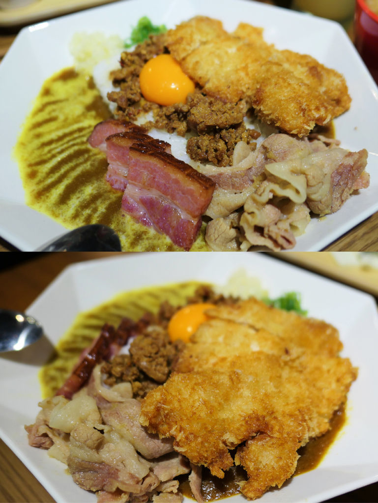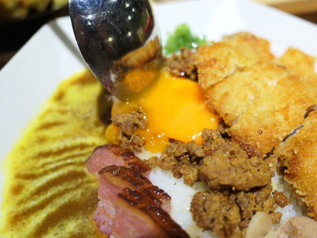 咖哩美味的吃法,就是把蛋黃戳破混著白飯、咖哩醬還有肉一起送入口中,如果不敢吃生蛋的人,也可以在點餐時選擇更換成水煮蛋唷!