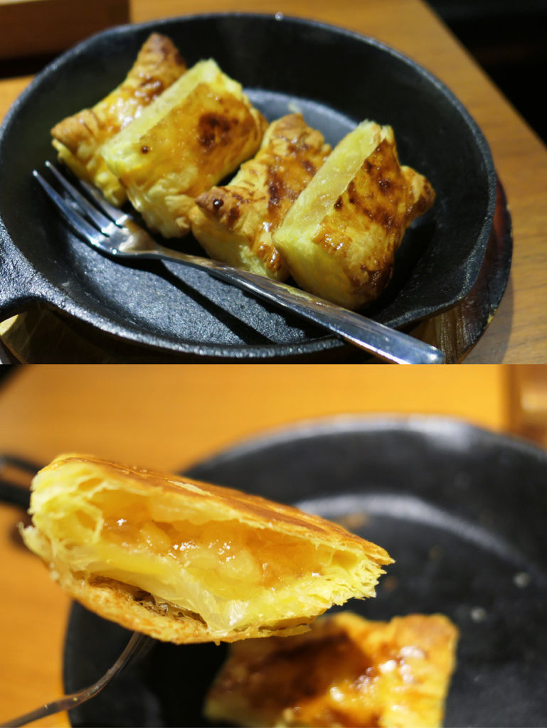 「三上咖哩」的蘋果派外皮薄而香酥,不會過於油膩,而內餡就很單純的是蘋果丁,甜味適中,不會過於甜膩,而且也沒有添加肉桂,接受度大為提升。