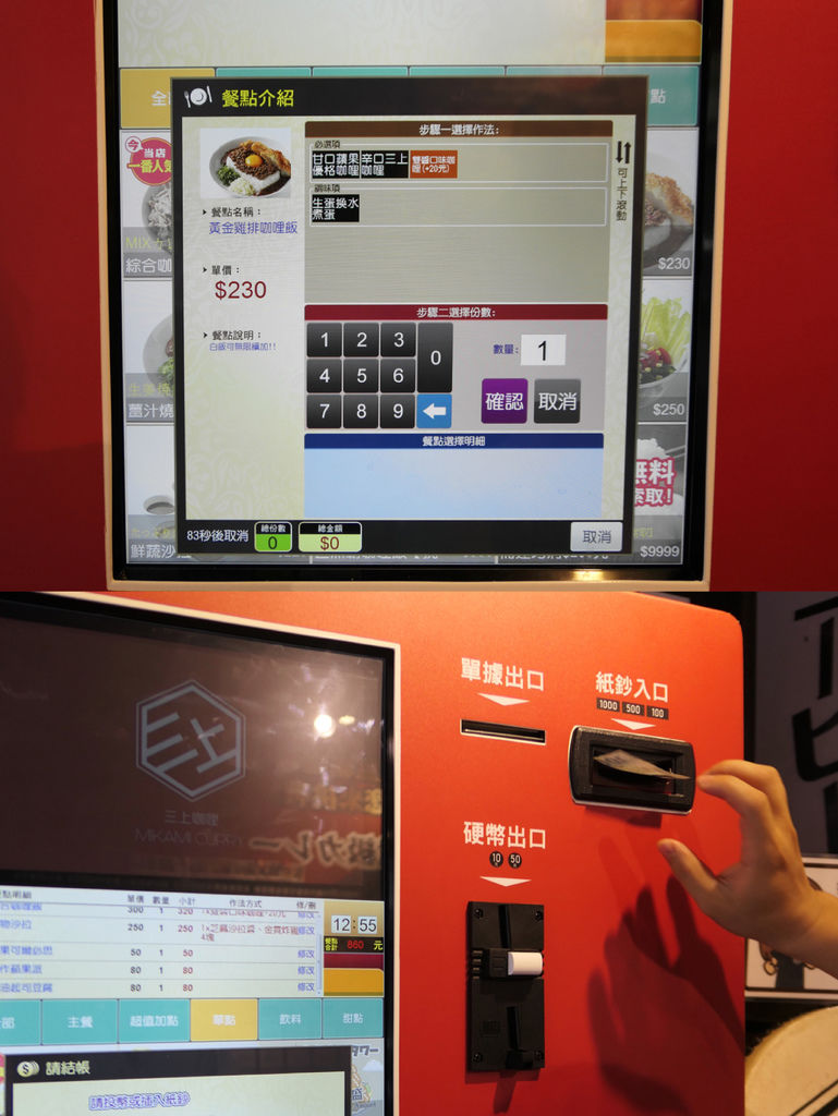 店家的另外一個特色,就是使用自助點菜機點餐。操作上我覺得十分簡單明瞭,如果遇到困難,可以敲敲旁邊的太鼓,就會有親切的店員來協助囉!拿到單據之後,等待叫號就可以前往取餐。