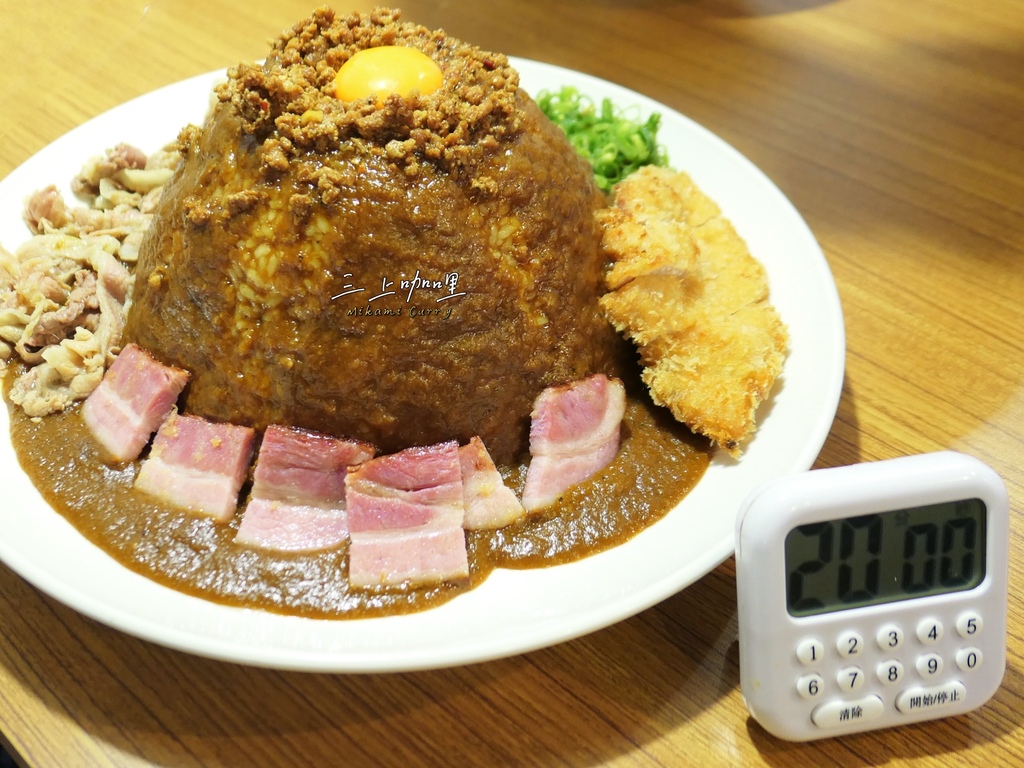 看看那堆的像小山般的米飯,還有一旁滿滿的肉品,上頭淋上的咖哩活像是火山爆發般猛烈,光是用眼睛看就飽了,更何況要在時間內吃完,如果對自己食量有信心的人記得要先預訂啊!一天只有限量五份!