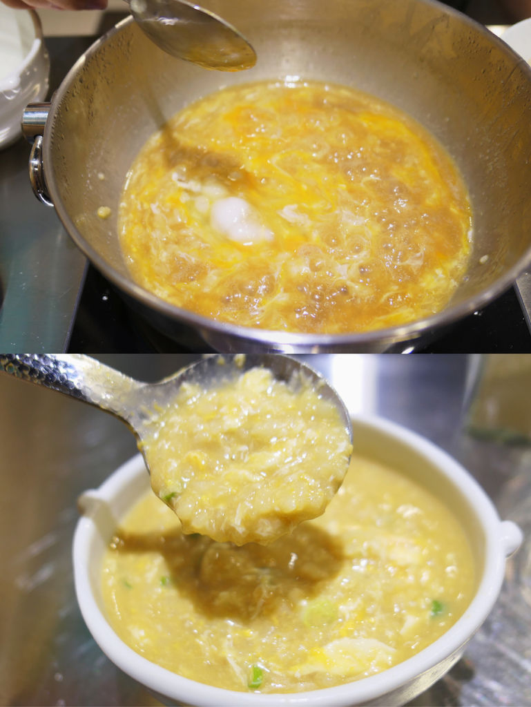 吃起來雞湯味超級濃郁,米飯又很細緻綿密,配上濃稠的蛋花跟充滿香氣的蔥花,這真的可以當作料理販售了,不僅美味,飽足感也十足。