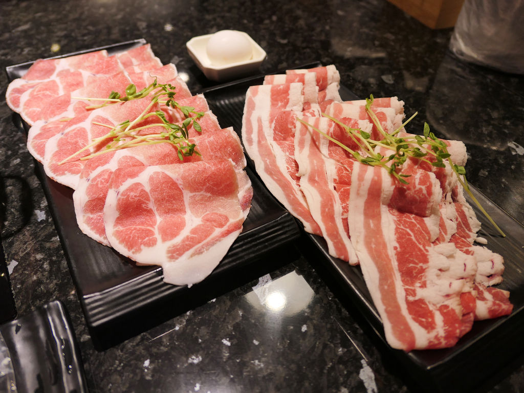套餐內有附肉盤兩盤,可以選擇梅花豬7oz或是五花牛7oz,所以我就各點了一份,雖說是7oz但分量其實也不少,如果肉控覺得不夠,試營運期間還可以FB打卡再送肉盤。