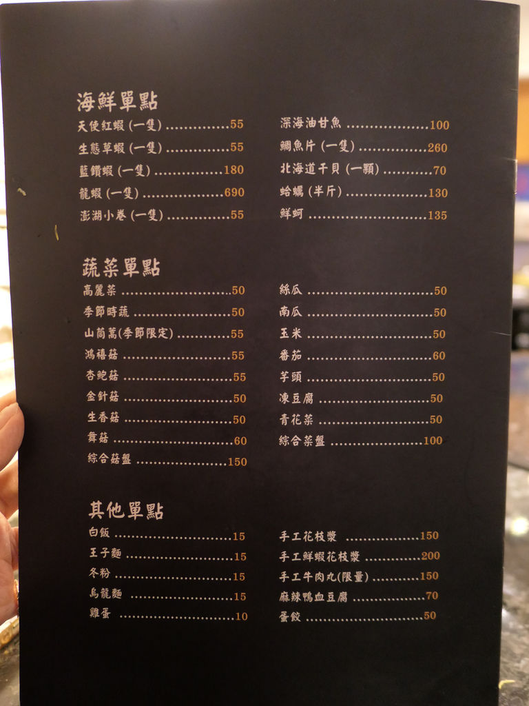 這次的湯底特別選擇鴛鴦鍋,可以稍微變化一下口味,湯底除了日式昆布鍋之外,其餘需要加價$80-$90不等,這次選擇了老闆推薦的蒙古香辣鍋,完全沒有讓我失望。