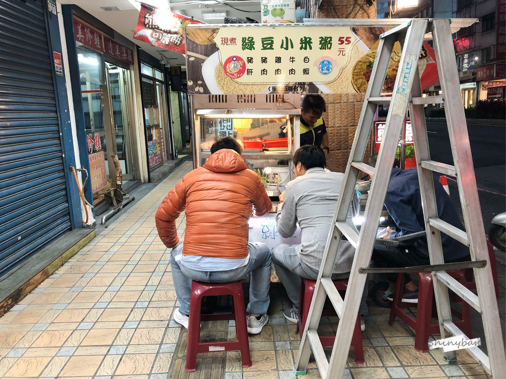 「綠豆小米粥」原本位置在捷運台北橋站旁的巷弄中,位置比較隱密,現在改在捷運站斜對面,靠近三和夜市口的騎樓上,生意似乎變得比較好,老闆似乎是原住民,非常親切,會很細心地詢問需求。