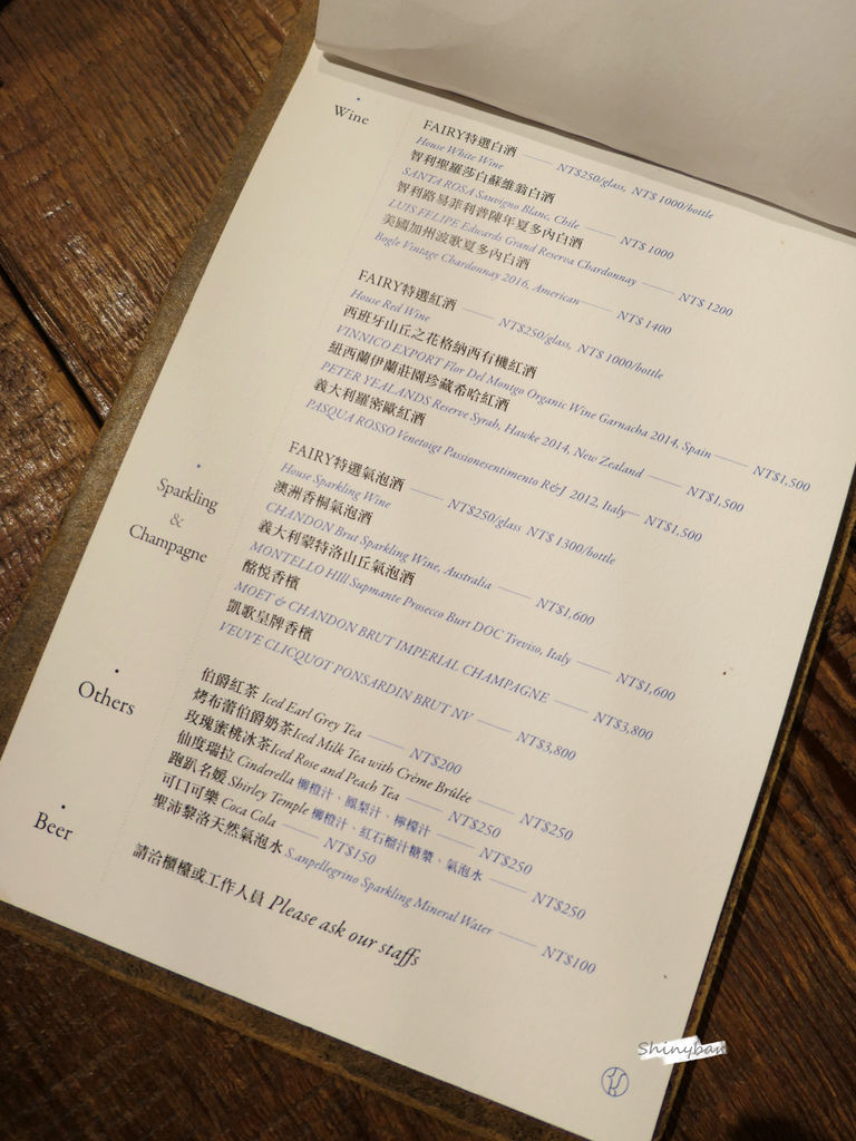 由於同行有人不喝酒的關係,所以這次沒有嚐到「Fairy Taipei」的特色調酒,稍嫌可惜。