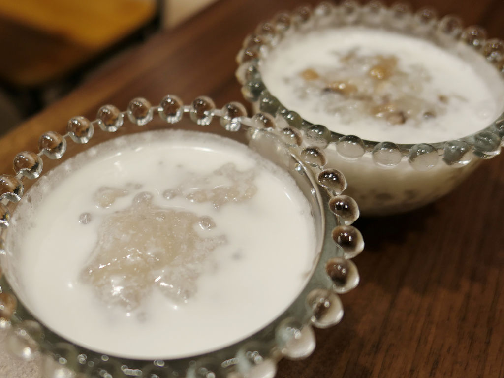 打卡活動贈送的甜品,吃起來就像是非常濃郁的西米露,綿密又不死甜,除了超高人氣的芋頭之外,營養豐富的米豆也很推薦,其帶有顆粒口感十分吸引人。