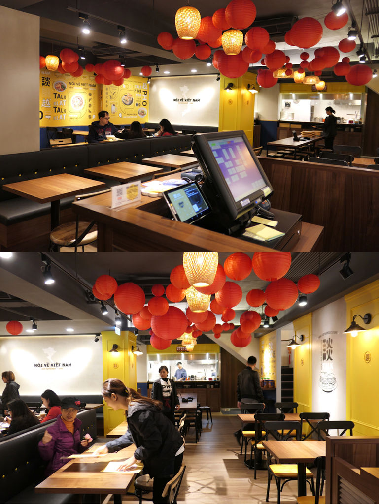 大片的落地窗,現代的設計,讓人很難不多注意一眼,新穎且繽紛的樣貌,實在讓人很難想像這是一間越式餐廳。