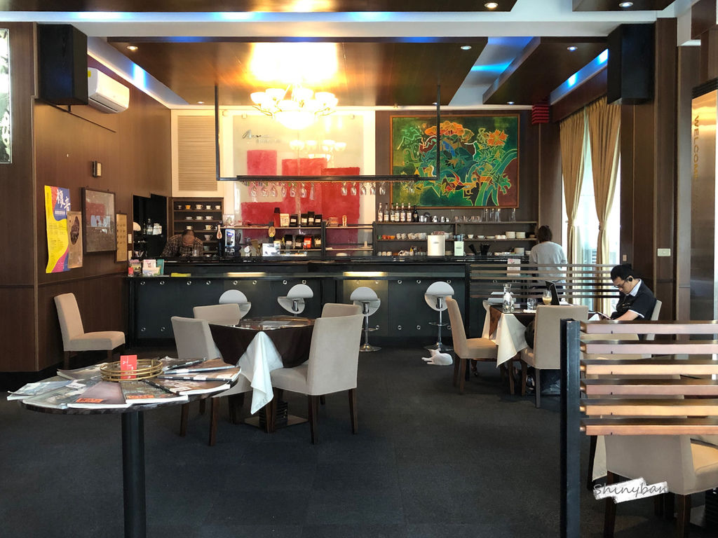 店內是採挑高建築,絲毫沒有壓迫感,裝潢布置有種簡單的奢華感,會讓我想到比較傳統飯店的餐廳。