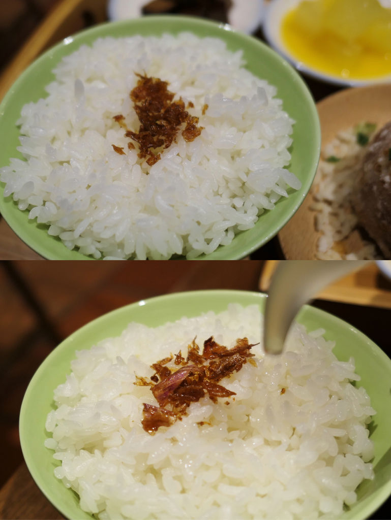 店家將71號益全香米煮成偏硬的口感,越是咀嚼越能感受其淡淡的甜味,而店家也有另外提供豬油及醬油可以自行添加,做成豬油拌飯更是與老宅的氛圍相互呼應。