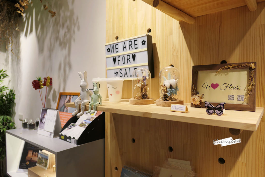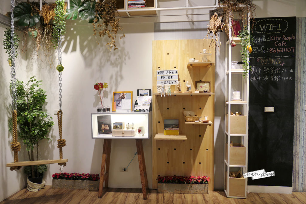 一樓還有十分吸睛的鞦韆裝置藝術,一旁的植栽及乾燥花賦予了些文青氣息,一些小擺飾也很有童趣,而架上也有提供小商品販售,喜歡都可以用新台幣把它們帶回家。