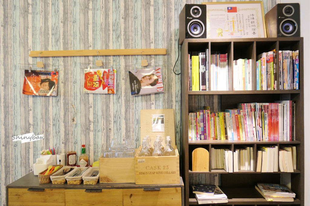由於店家沒有酌收服務費,所以餐具跟水都是自取,一旁書架上的書也可以自行翻閱,喝杯咖啡看本書也是挺愜意的。