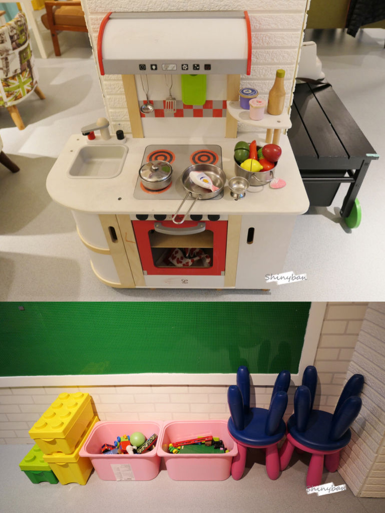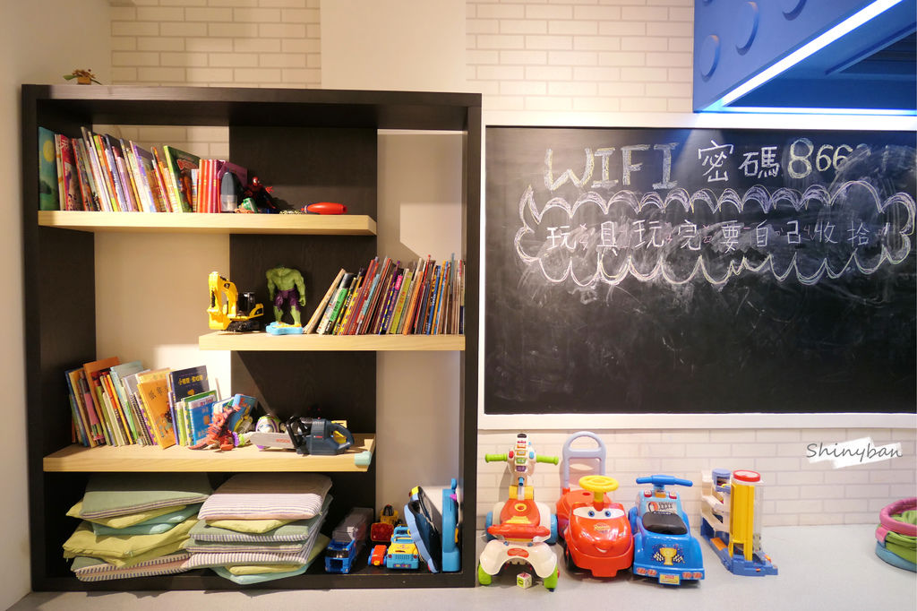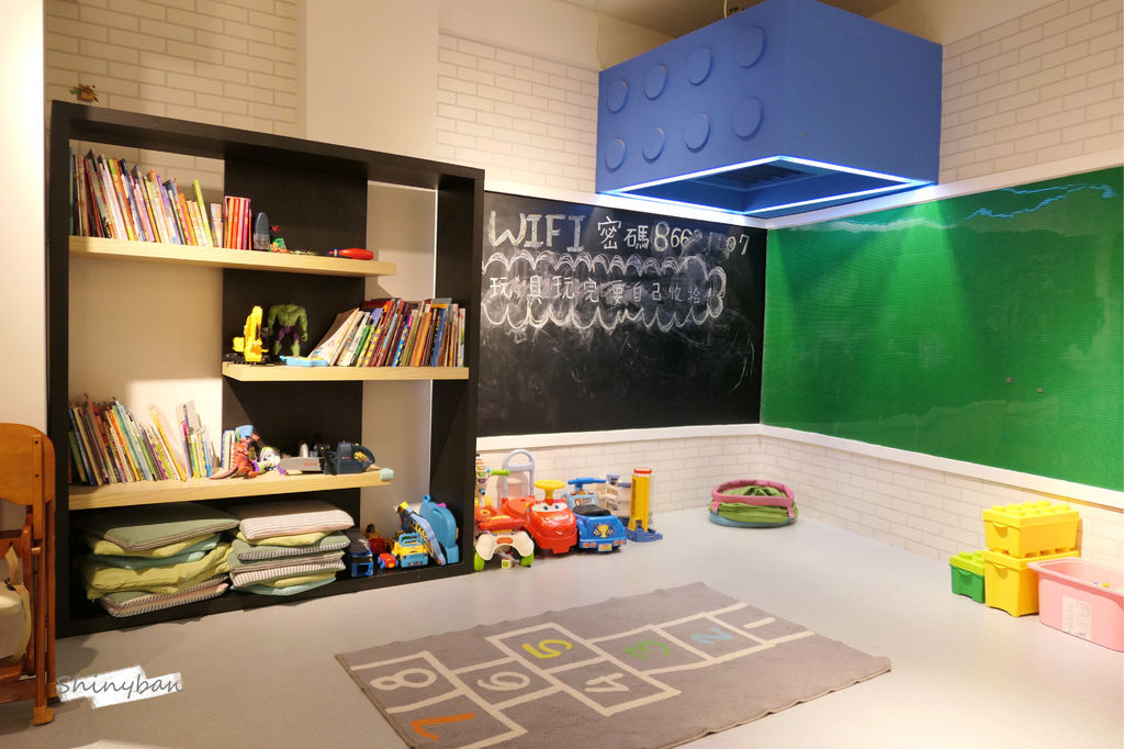 遊憩區的空間很大,玩具也算是多樣,有扮家家酒、積木、小汽車等,相信小朋友能玩得不亦樂乎,除了玩具之外,店家也有提供童書翻閱。