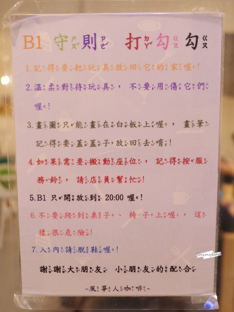 進去遊憩區是要脫鞋的,玻璃上有貼著守則,也請大人小孩務必要遵守唷!