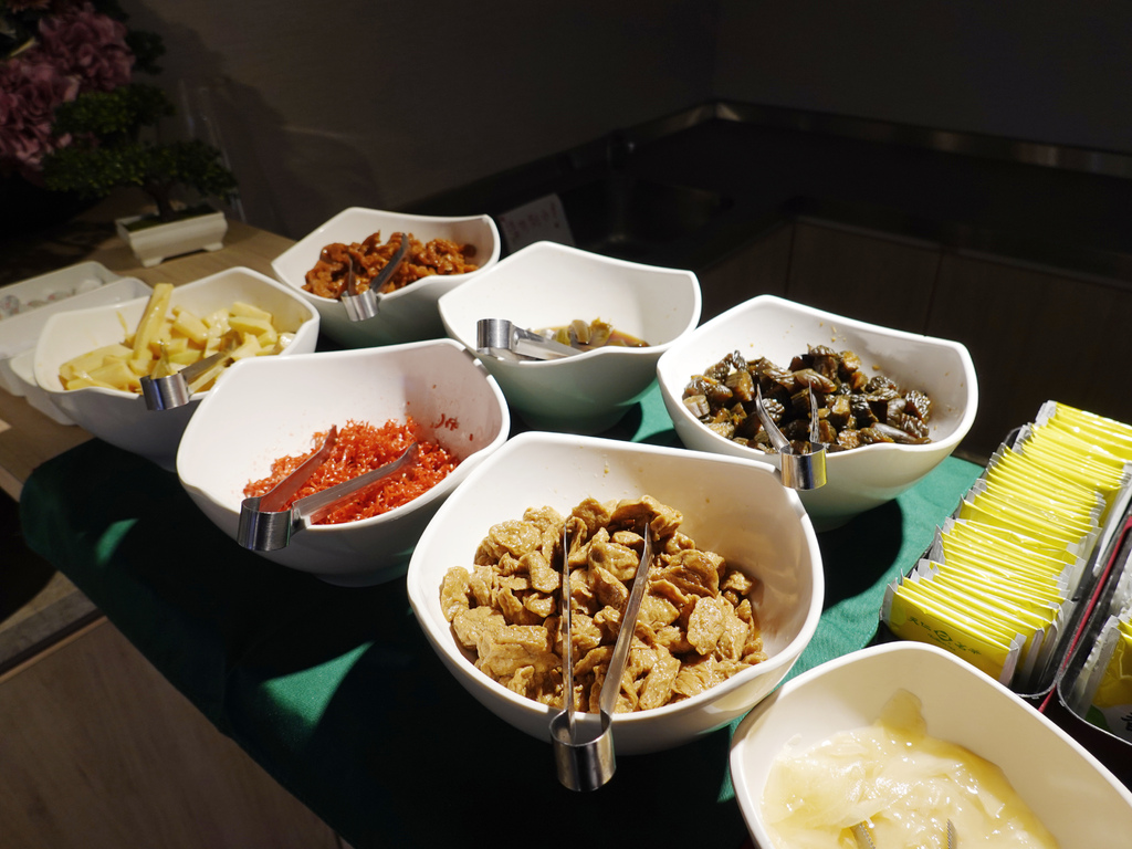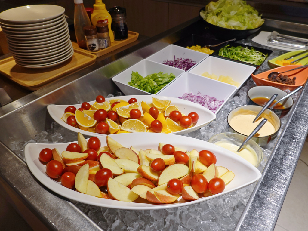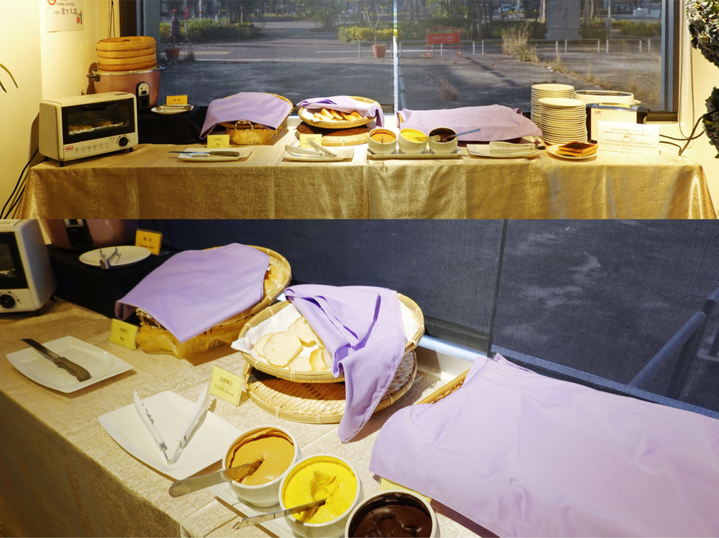 「道達旅店」提供的早餐算是十分豐盛!除了咖啡果汁可以自行取用之外,還有提供中式及西式早餐,無論想吃麵包或是吃飯吃粥都可以,而水果沙拉吧也是沒有少。