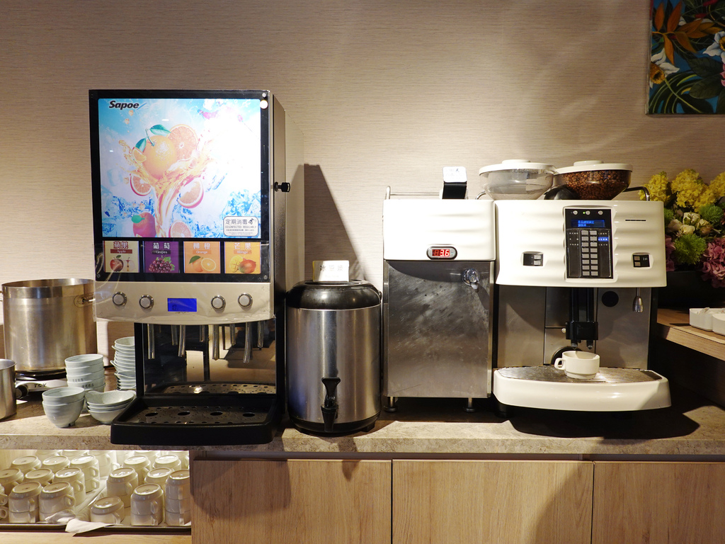 而一樓的空間還有餐廳,旅店提供的早餐就是在這邊享用,這裡很貼心的還有提供飲料,24小時都可以取用,偶爾嘴饞可以稍微吃點小點心。