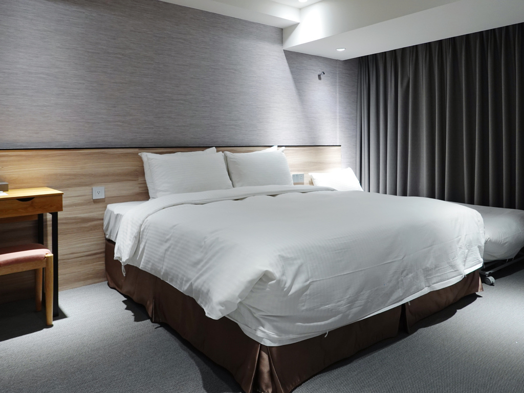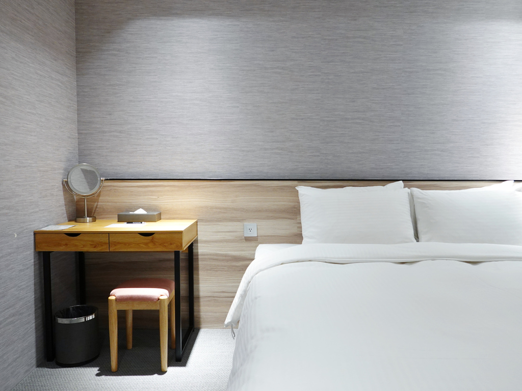 其中一間房備有化妝台,另一間則是獨立的掛衣架及小茶几,床的軟硬度適中,枕頭及被子都是羽絨材質,睡起來超舒服,乾淨整潔度更是不用說,毫無毛髮跟異味,這點對我來說超級加分。