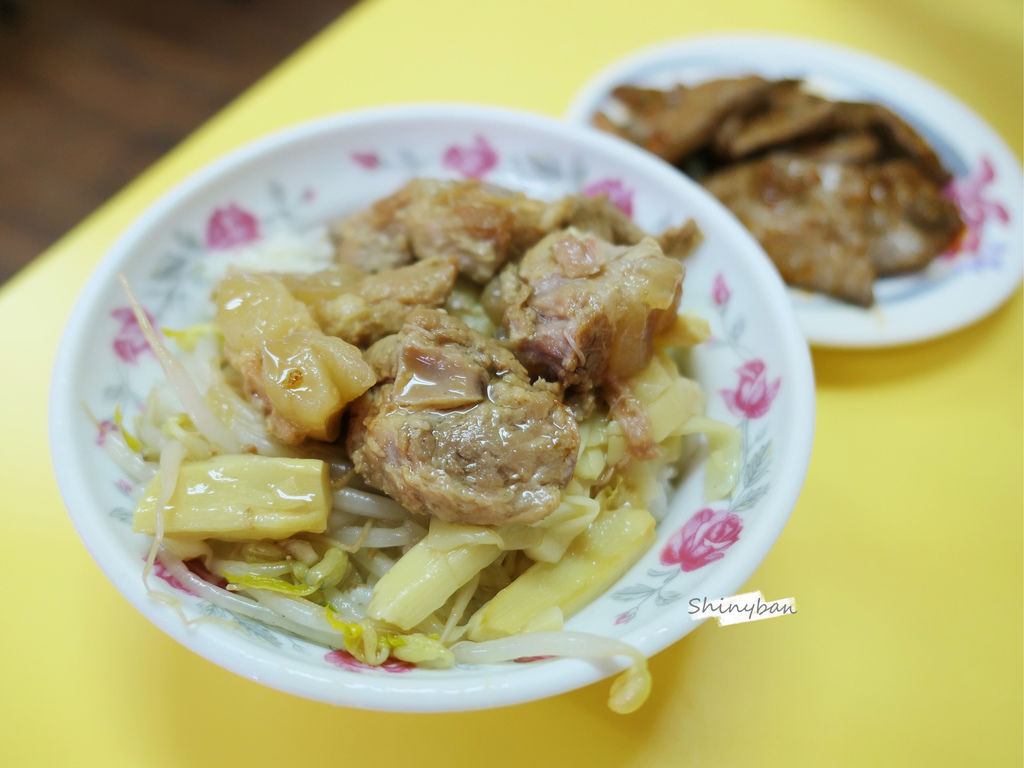 飯上除了軟骨外,還有一些清爽的筍乾跟豆芽。軟骨口感跟我想像中大相逕庭,原本以為是富有口感,可以喀拉喀拉咬出聲,實際是連牙口不好的老人家都可以輕易食用的軟嫩化口。