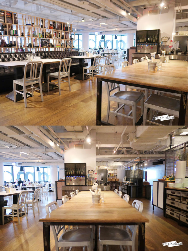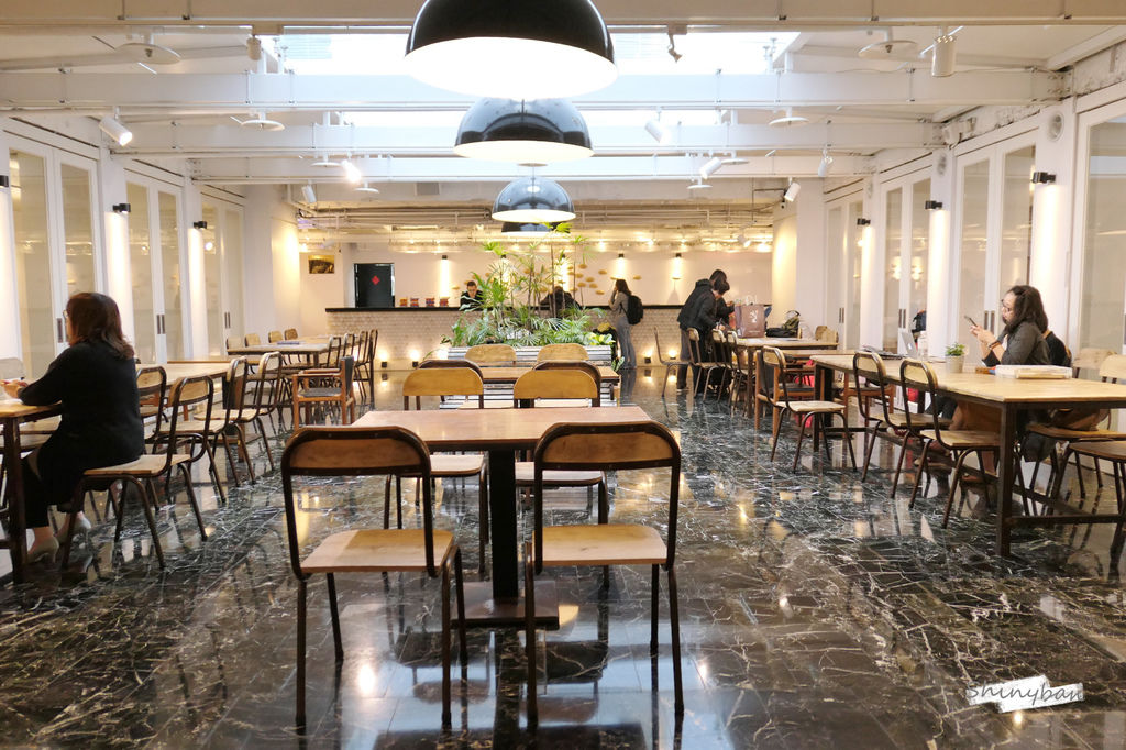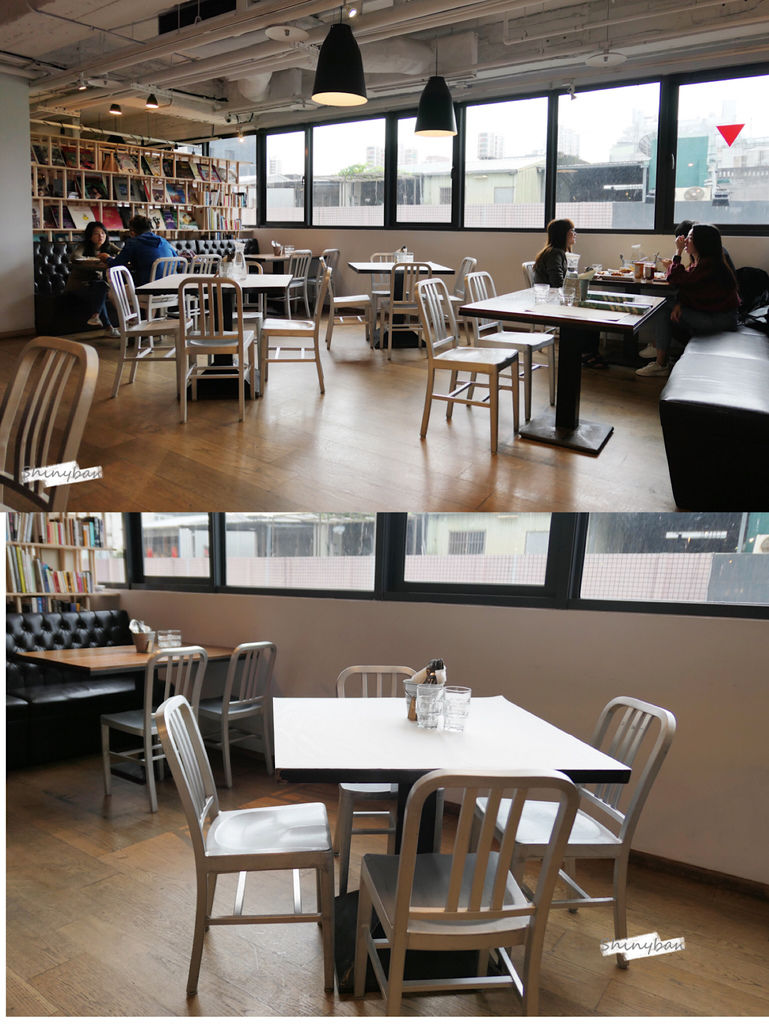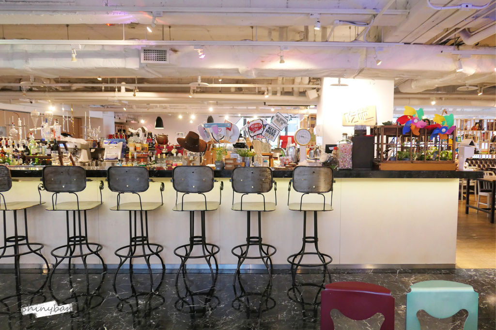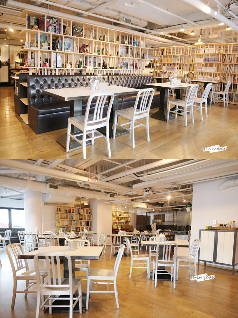 「吃吧」的空間非常舒適,毫無壓迫感,十分有美式風格,以書架作間隔的用餐區,若有大型聚會需求可以自由移動,空間彈性很大,而除了書籍之外,也有使用許多充滿童心的公仔作擺設,替工業風增添了不少活潑與生氣,隨興卻不隨意。