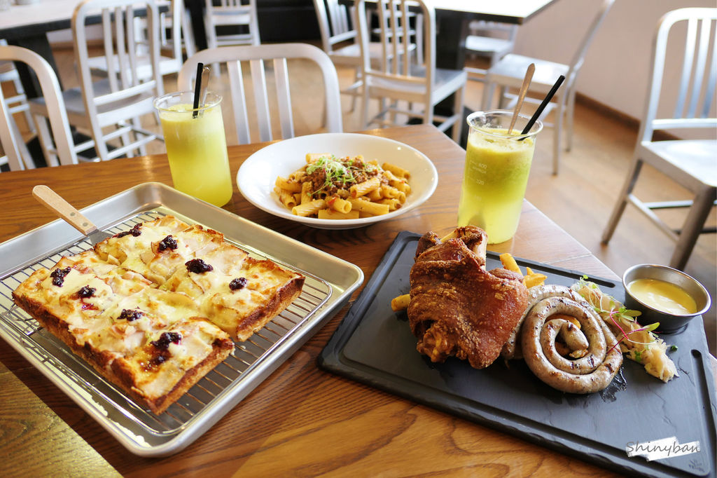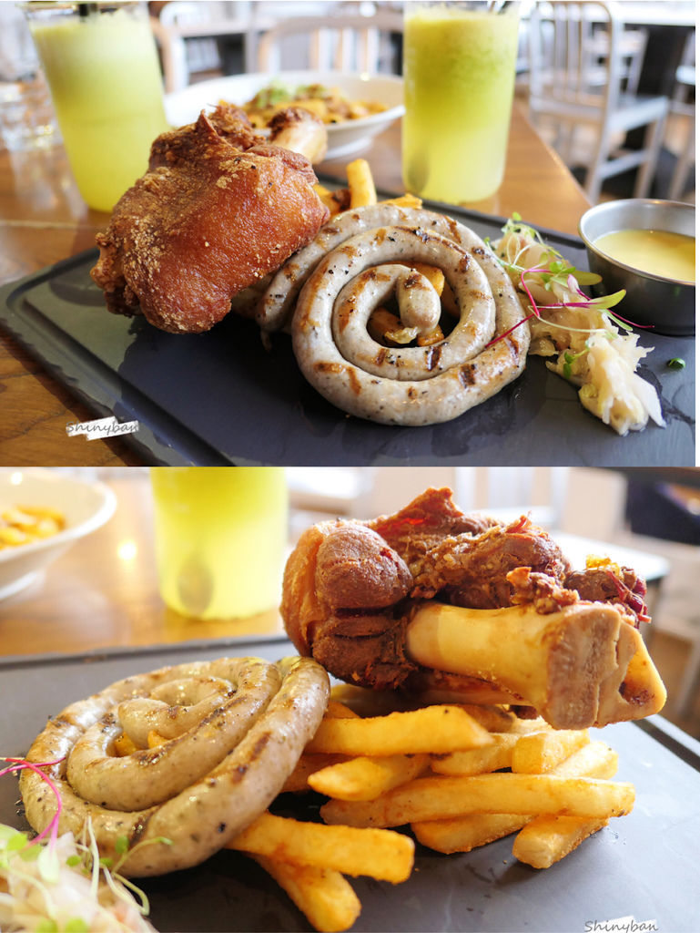 德國豬腳應該是三五好友聚餐的好夥伴,豬腳外皮酥脆,肉質富有彈性,搭上一旁的酸包心菜跟黃芥末醬,爽度超高,另外還有附上脆薯跟德式圈腸,可以稍微轉換一下口味,搭配可以大口豪飲的啤酒,是一個超級紓壓的組合。