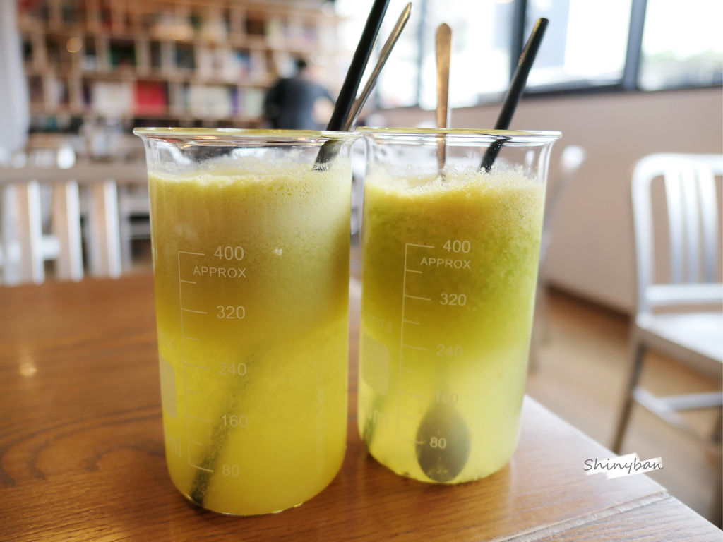 鮮榨果汁完全真材實料,用燒杯盛裝很有意思,可以喝到有點口感的果肉,搭配美食比較沒有負擔沒有罪惡感。