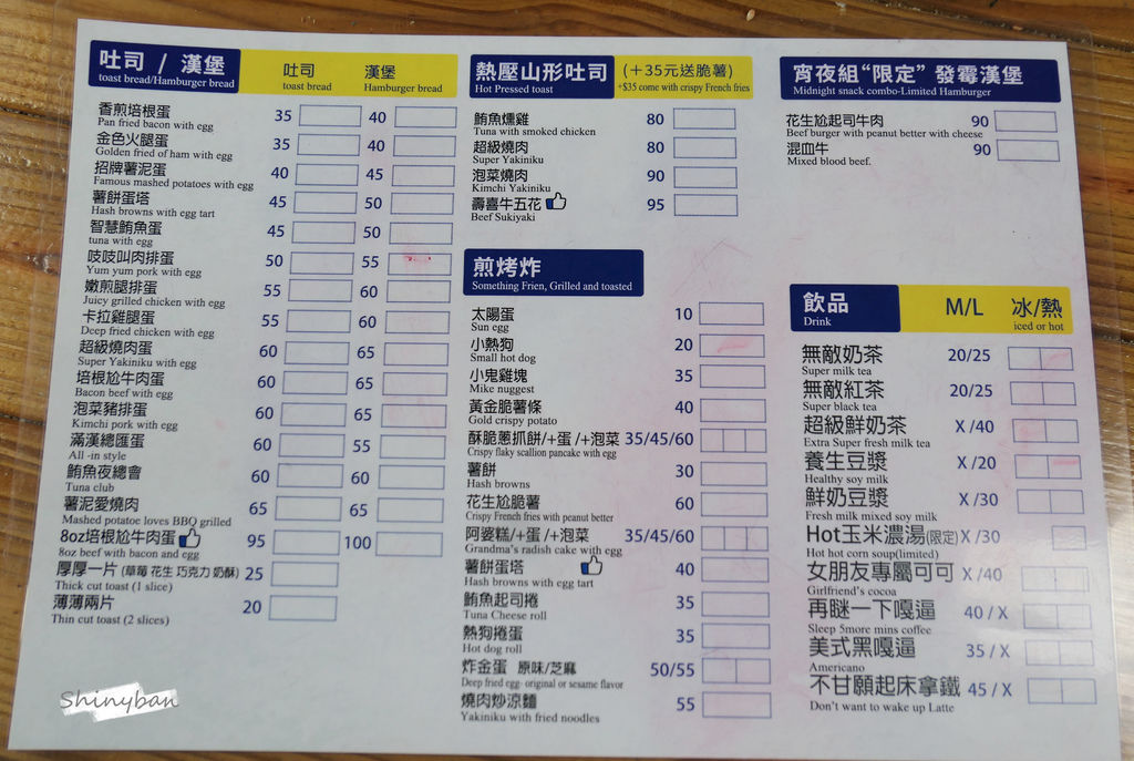 這份套餐有包含厚片吐司、薯餅蛋塔跟$20飲品。