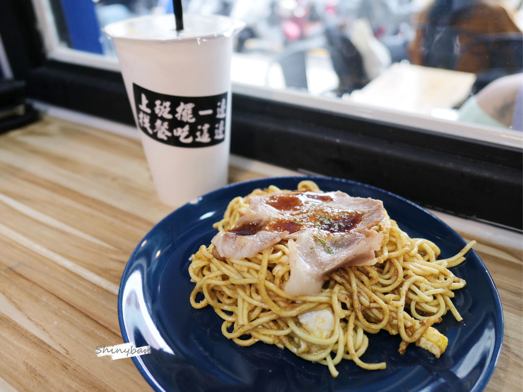 涼麵以熟悉的芝麻醬做拌炒,還搭著一些軟嫩的半熟蛋,上方放著一片燒肉片,淋著些許醬油膏,整體吃起來很融洽,並不如外觀看起來的重口味,這道創意餐點我給予滿高的評價,而且和一般鐵板麵的價位差不多,CP值滿高。