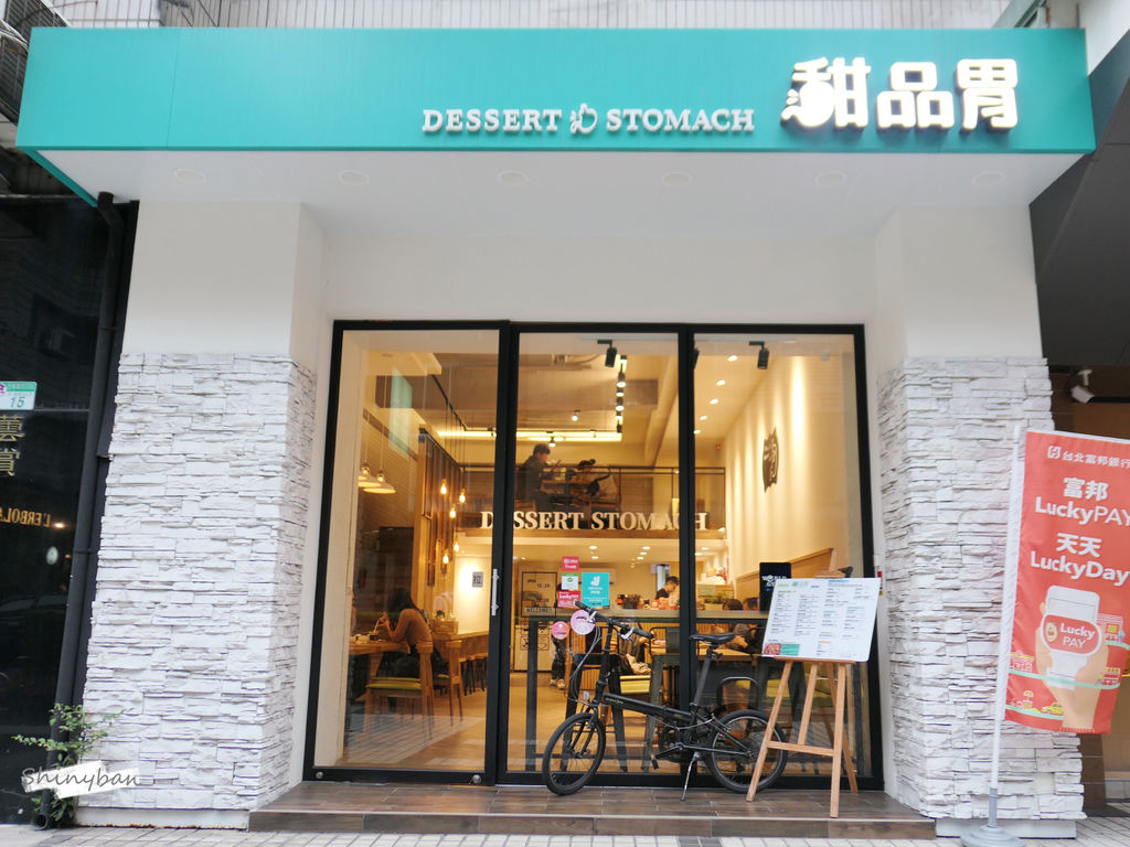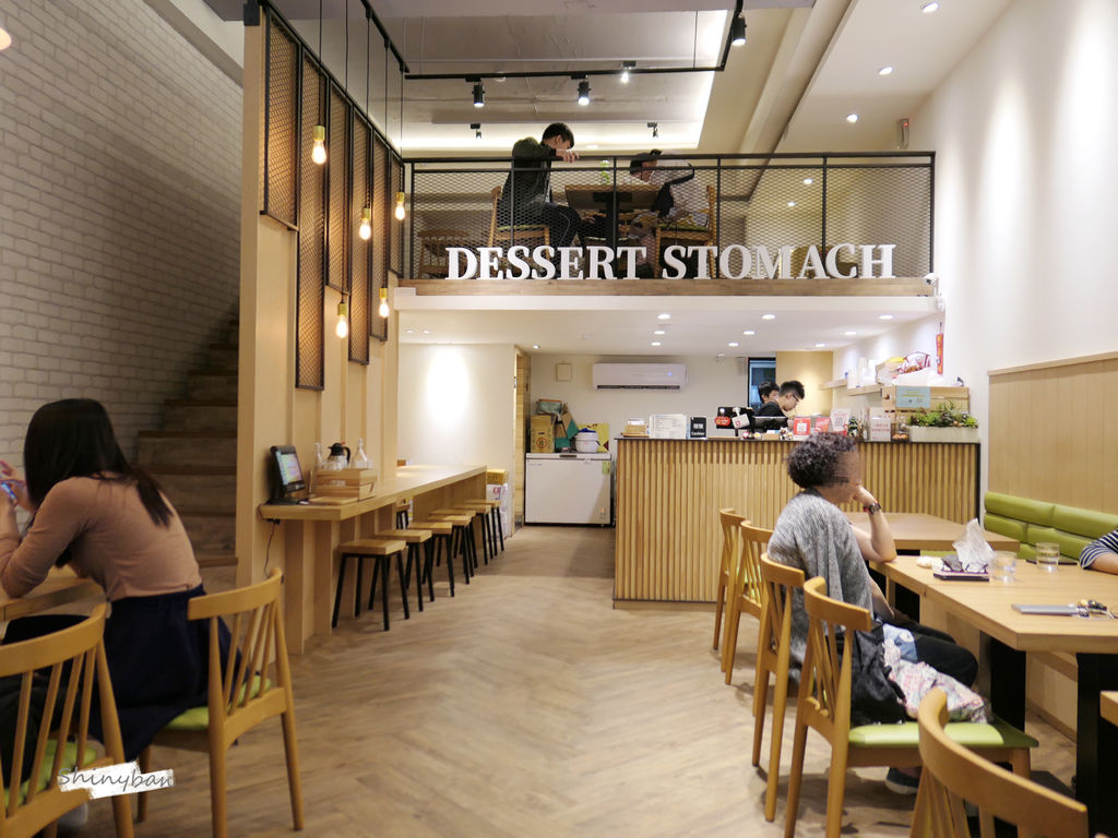 「甜品胃」位於捷運忠孝敦化站3號出口步行約兩分鐘,就在明曜百貨後方的巷弄中。白色搭配tiffany藍的挑高空間,很難想像他是一間港式甜品店。