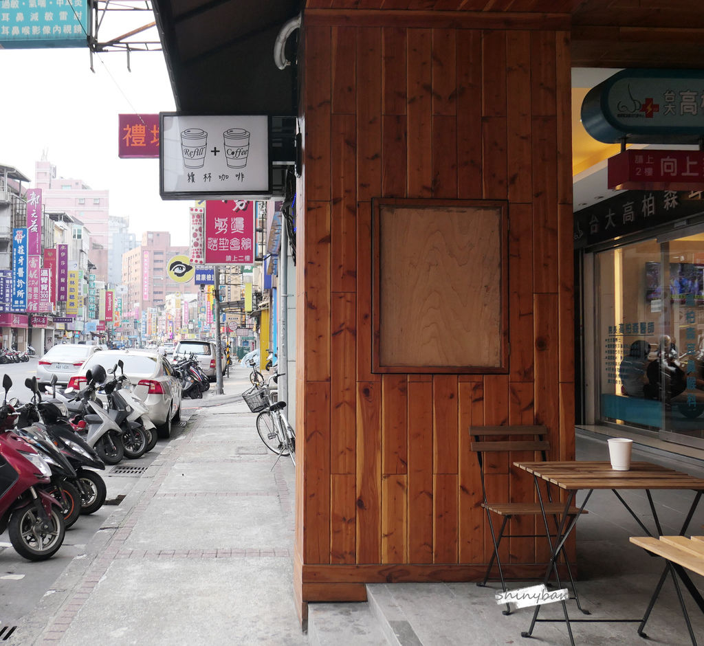「續杯咖啡」位於熱鬧的正義北路上,從捷運三重國小站步行約五分鐘即可抵達,門面是以木質打造,有別於一旁的店家,風格十分顯眼。