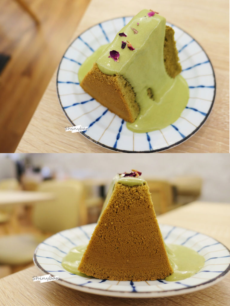 抹茶的戚風上頭淋著抹茶鮮奶油,甜度對我來說稍高,但還可以接受,戚風本身偏乾,抹茶香氣有點被鮮奶油給壓過,整體表現中規中矩,算是一款接受度滿高的蛋糕。