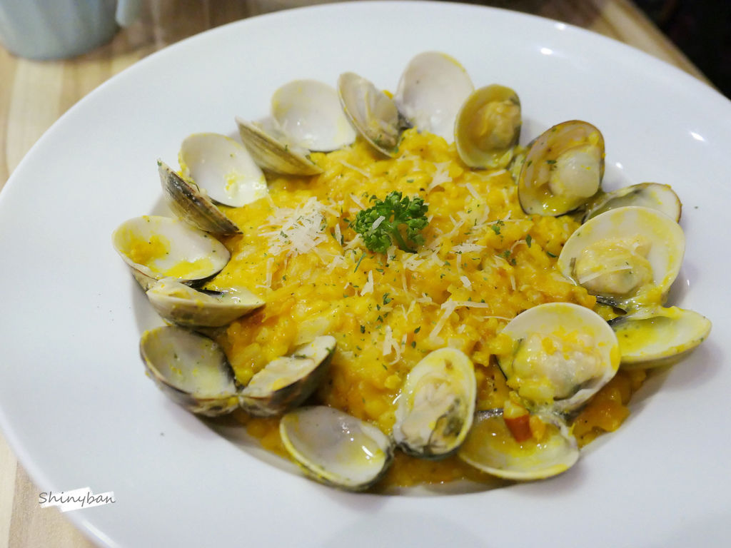 這道分量著實不少,南瓜跟飯都是十分有飽足感的澱粉,加上一整圈的蛤蜊約有十顆左右,南瓜散發自然的香甜,米飯部分對我來說稍嫌偏軟,整體建議分食會比較不膩口。