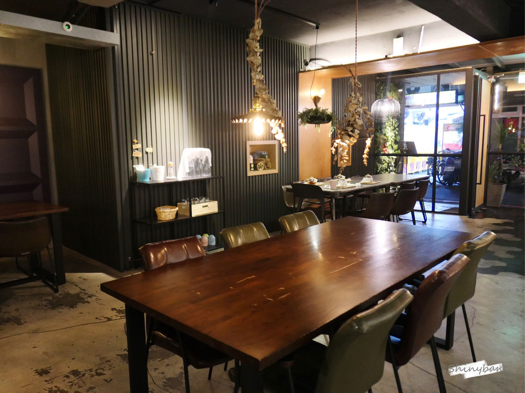 座位部分,可能目標多是聚會用餐,大多是六人長桌,後方還有沙發座,雙人桌則略顯狹小。