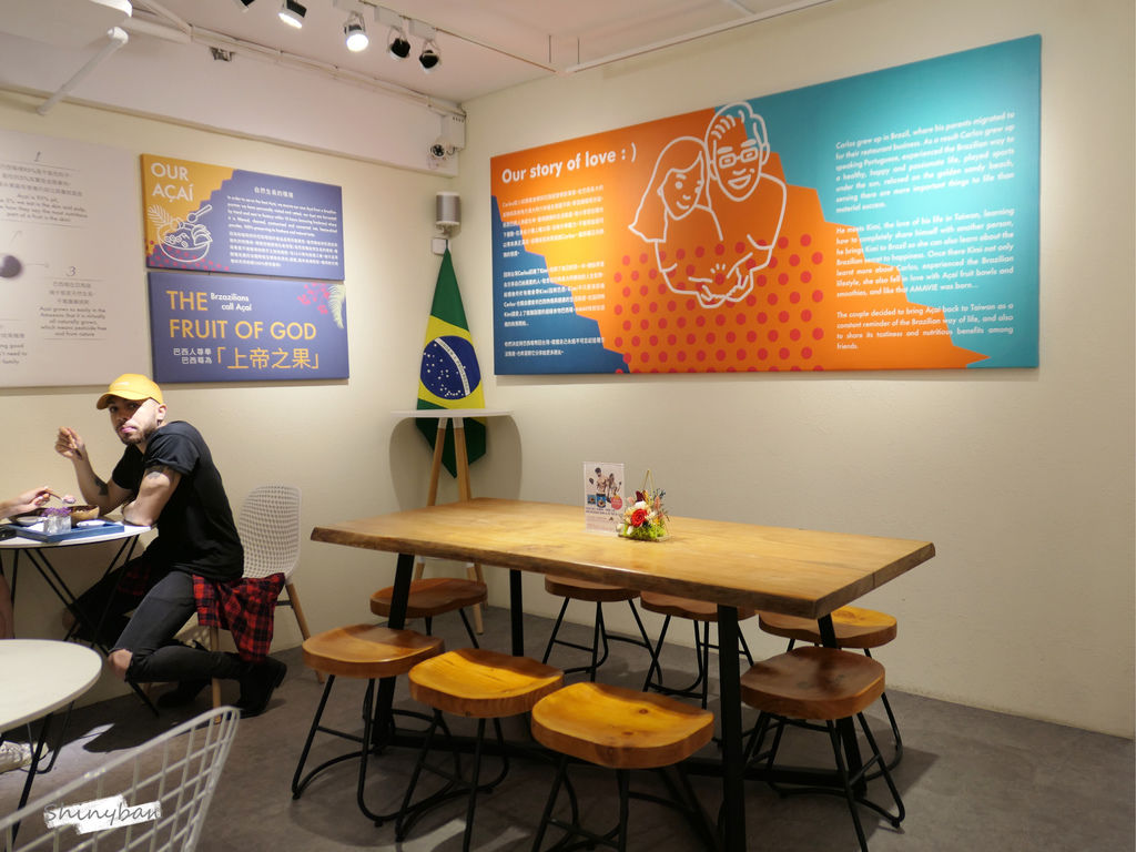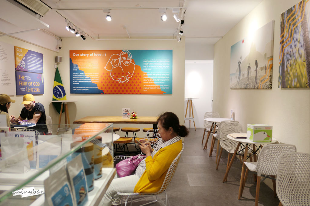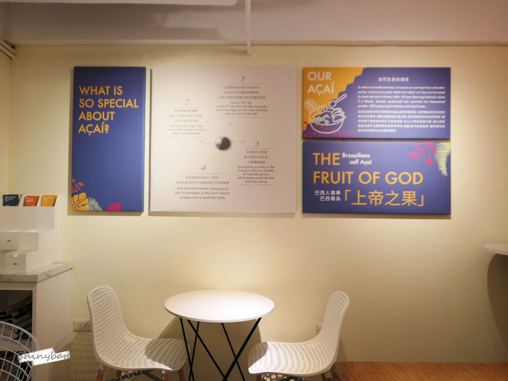 店內桌數不多,空間十分舒適,牆面上有擺放著一些巴西照片、巴西莓的介紹以及這間店的故事,使得白色的牆面豐富了起來,在了解了巴西莓之後,真的會不由自主的對它產生更多好奇。