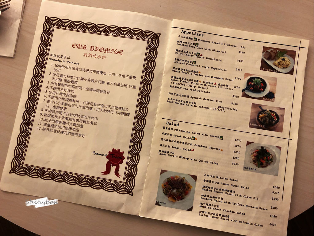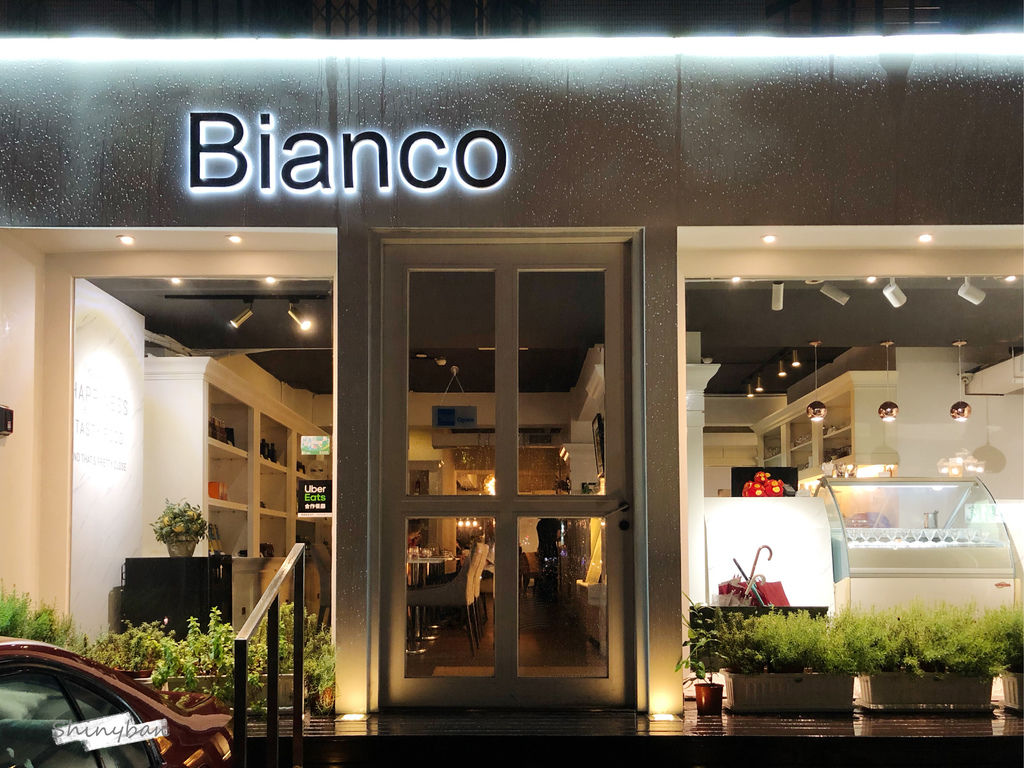 造訪當天是雨天的晚上,所以照片中純白門面不太明顯,店名中的Bianco在義大利文中,是白色的意思,白色有著簡約、單純、乾淨、清爽的意象,就如同店內的氛圍及對食材的堅持。