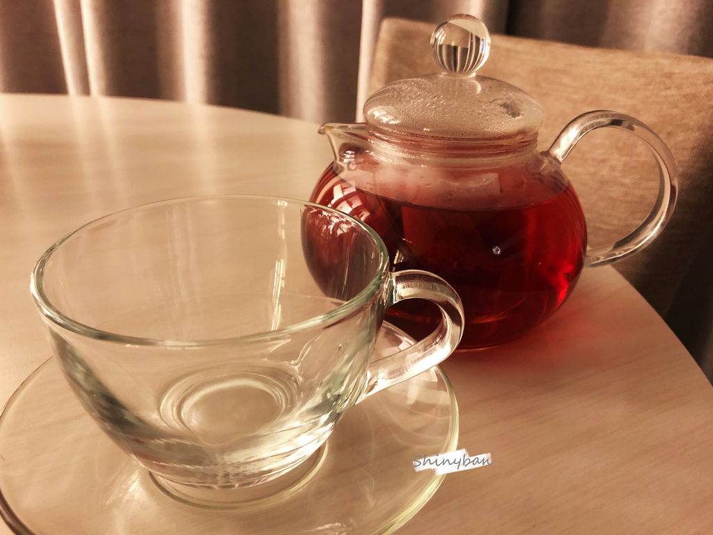 飲品部分則選擇了玫顏洛神花果茶,是可以重複做沖泡的熱壺,他們家的花果茶是不具任何甜味,但喝下鼻腔香氣四溢,有著以玫瑰及洛神花為主的香氣,在享用完餐點後來上一杯,清新又去油解膩。