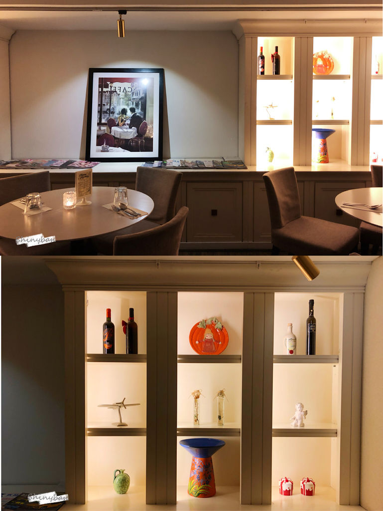 而店內布置承襲白色簡約風格,搭配浪漫的黃光,打造出優雅且浪漫的風格,座位數部分,兩人、四人桌型座位為多數,還有一個透明的包廂,約可容納十人左右的聚會。