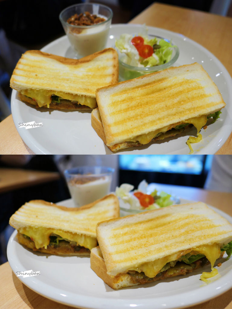 這道三明治一送上桌,我就驚覺不妙,整個吐司軟趴趴的,看起來毫不酥脆跟美味。