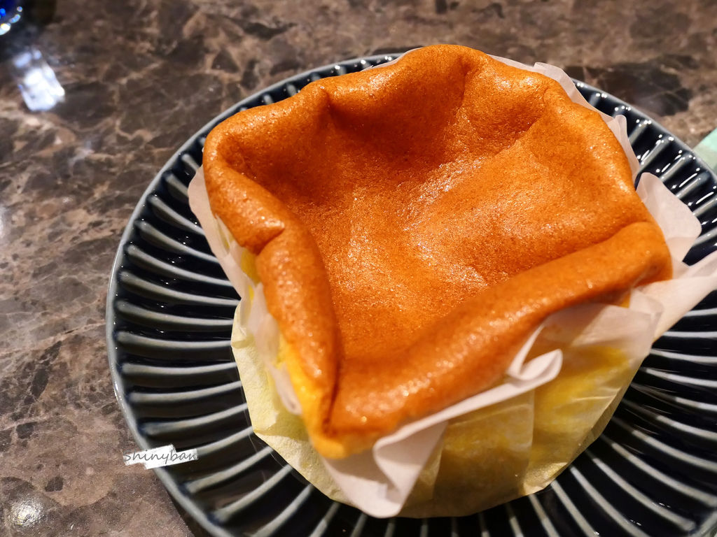不像一般蜂蜜蛋糕鬆軟口感,口感是軟Q,內裡濕潤有點像布丁,有蜂蜜香氣,原本以為是熱蛋糕結果是冰的,整體很新奇,但價位偏貴且個人接受度不高。