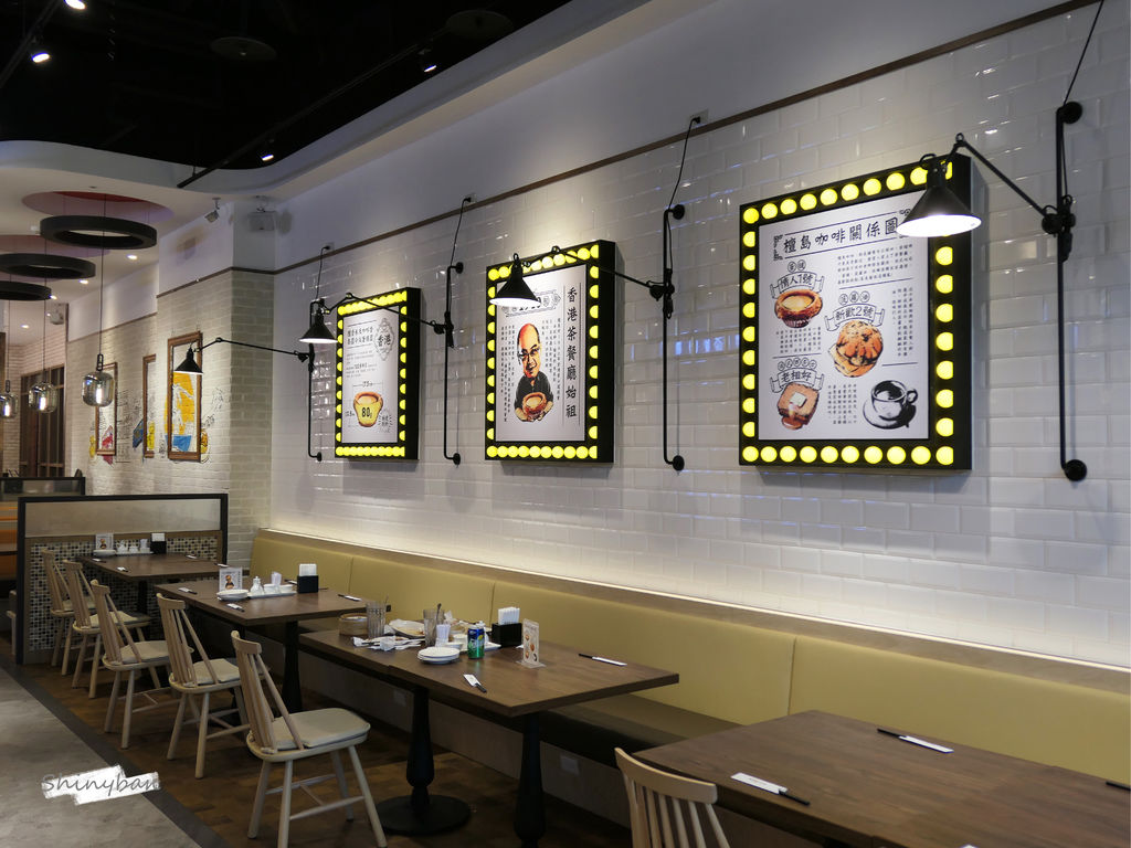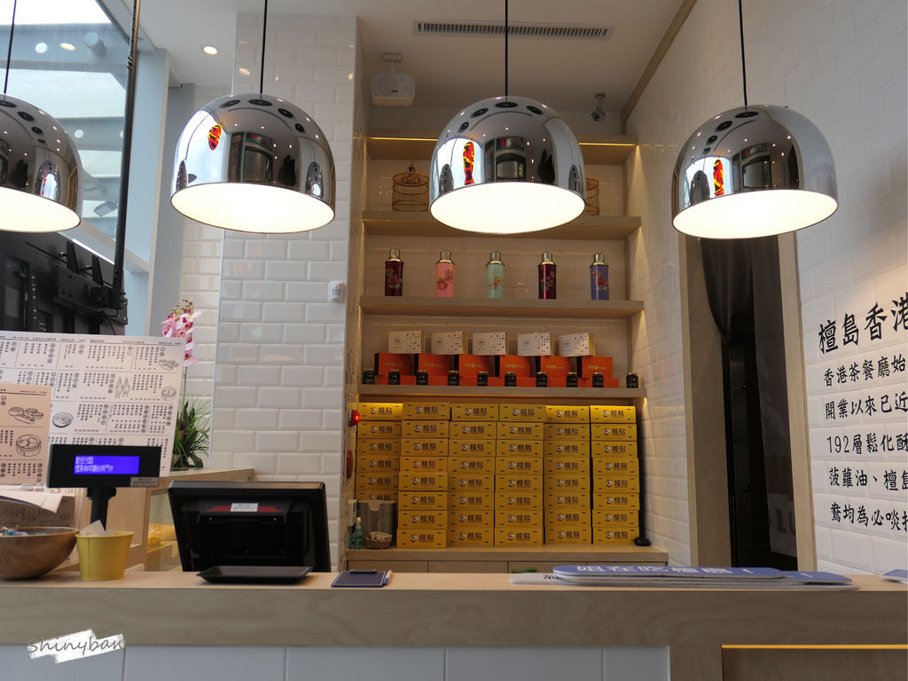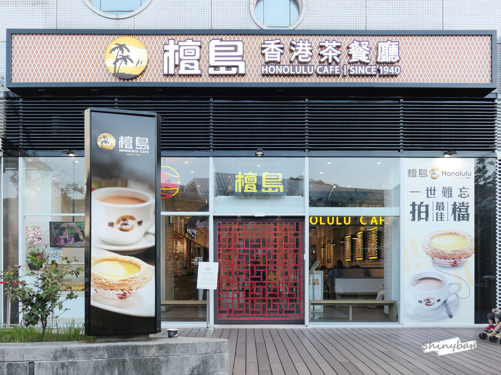 「檀島茶餐廳」劍南店位於捷運劍南路站三號出口約步行一分鐘,隔一條街就是美麗華,斗大的招牌十分氣派,一旁還放著招牌蛋撻和鴛鴦奶茶的照片,讓人忍不住多駐足觀看一番。