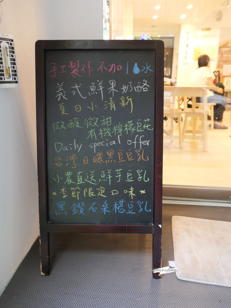 店內可選擇的豆乳口味不少,店員也會很大方的提供試飲並提供意見,不得不說,他們家的服務態度我很喜歡,真誠且親切,有種和朋友聊天的自在感。